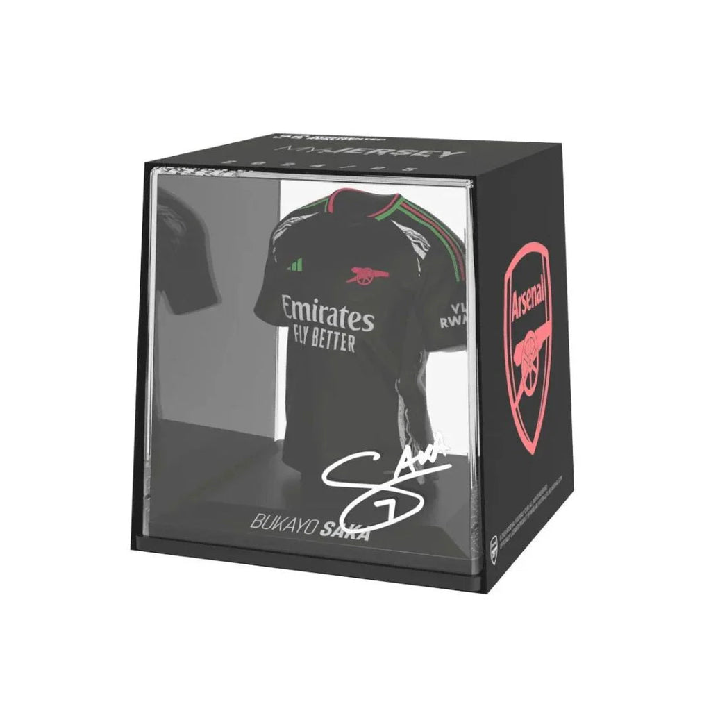 This meticulously designed "MyJersey" figure perfectly embodies Bukayo Saka's dynamic presence, showcasing a stylized representation of his iconic Arsenal home jersey. Crafted with precision and vibrant detail, it proudly displays the classic red and white of Arsenal, complete with the club crest and authentic design elements, signifying the passion of the Emirates Stadium.