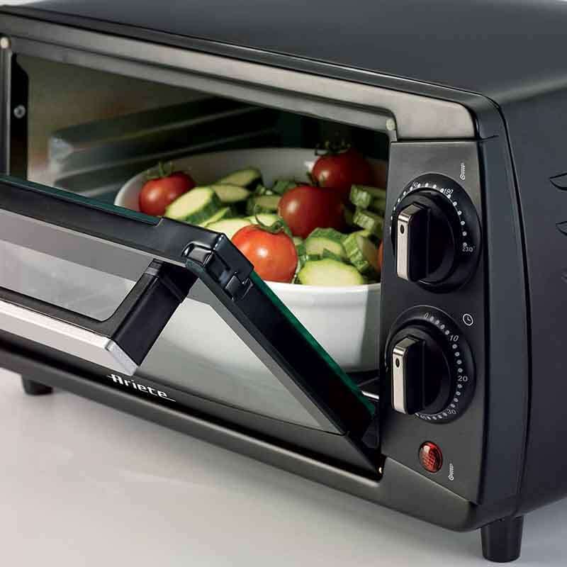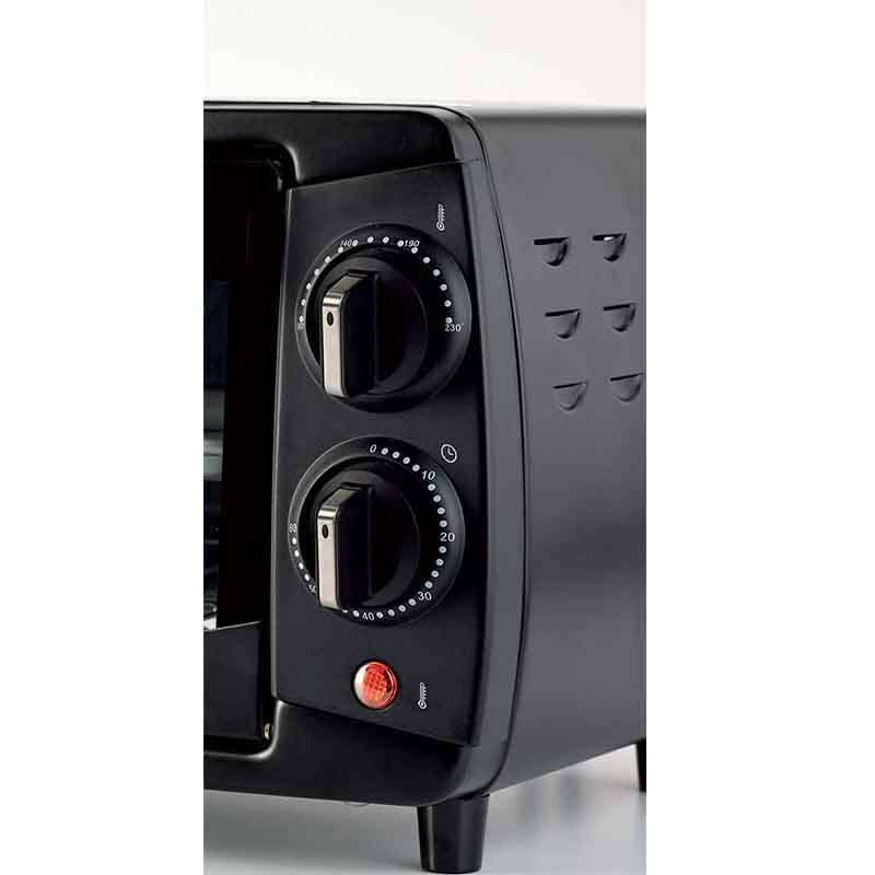 Super-compact electric oven, with a 10 liters capacity takes little space in the kitchen and it’s ideal for cooking, grill and heat food with great ease.