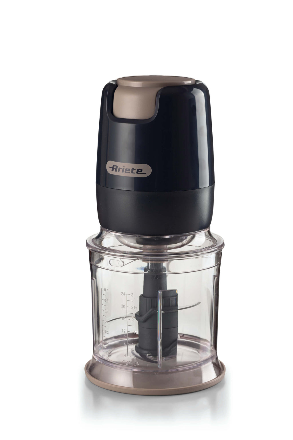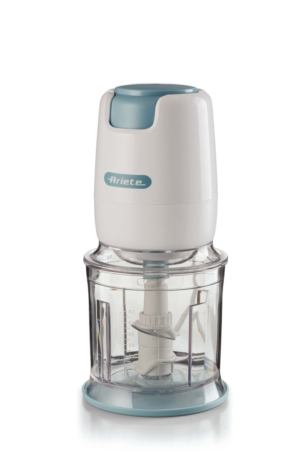 2-speed chopper, 400W, 4 stainless steel blades. Vegetable chopper and ice crusher. 700ml measuring cup.