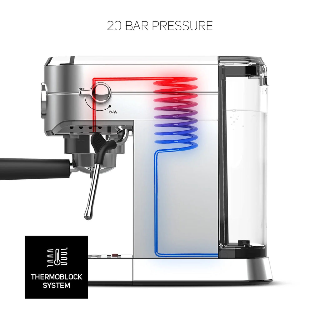 Experience barista-quality espresso at home with 20 bars of pressure and 1450W of power, extracting the rich aroma and full-bodied flavor of your coffee for a smooth, creamy espresso.