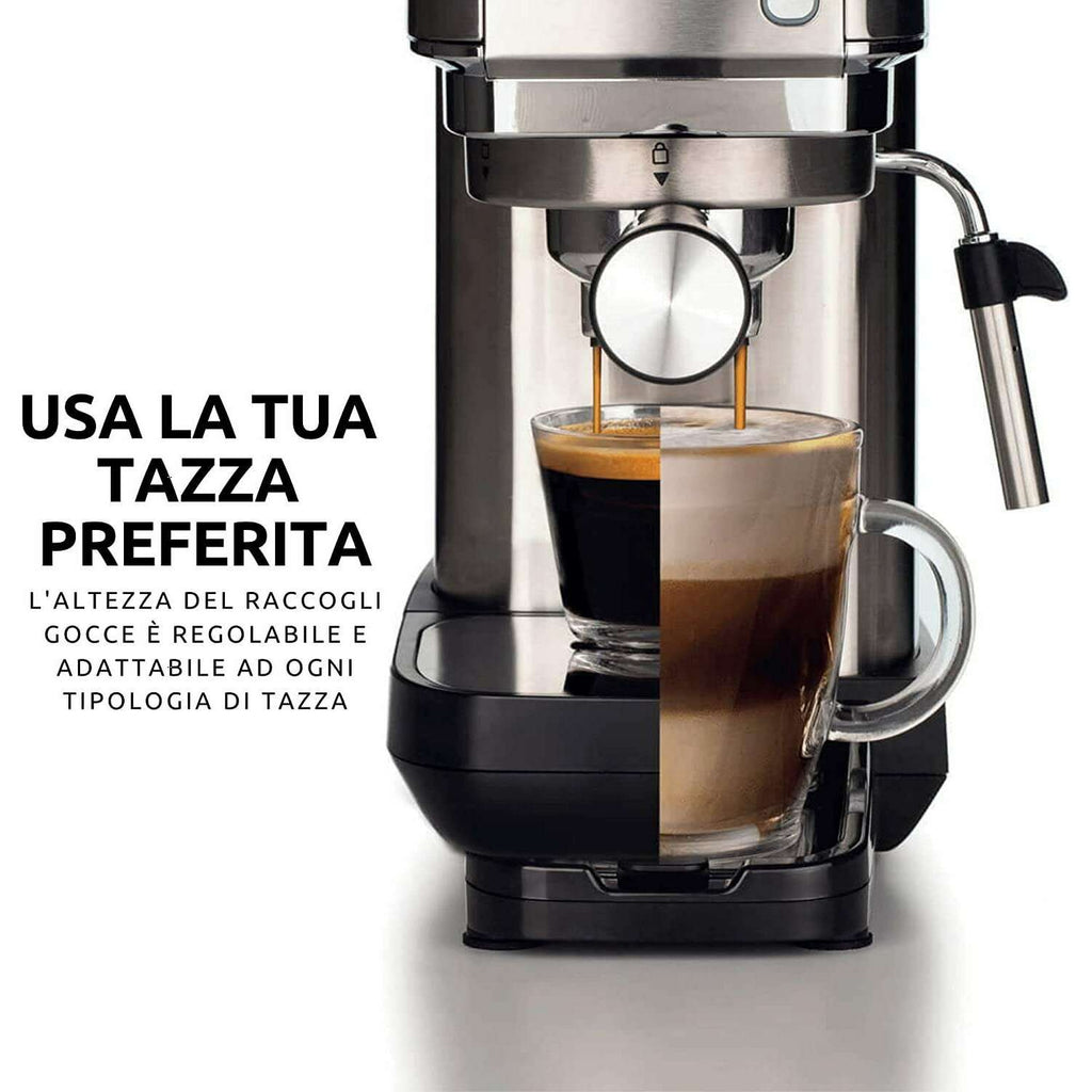 • Bring the taste of authentic Italian barista style coffee to your kitchen with the Ariete Espresso Machine from the Metal range