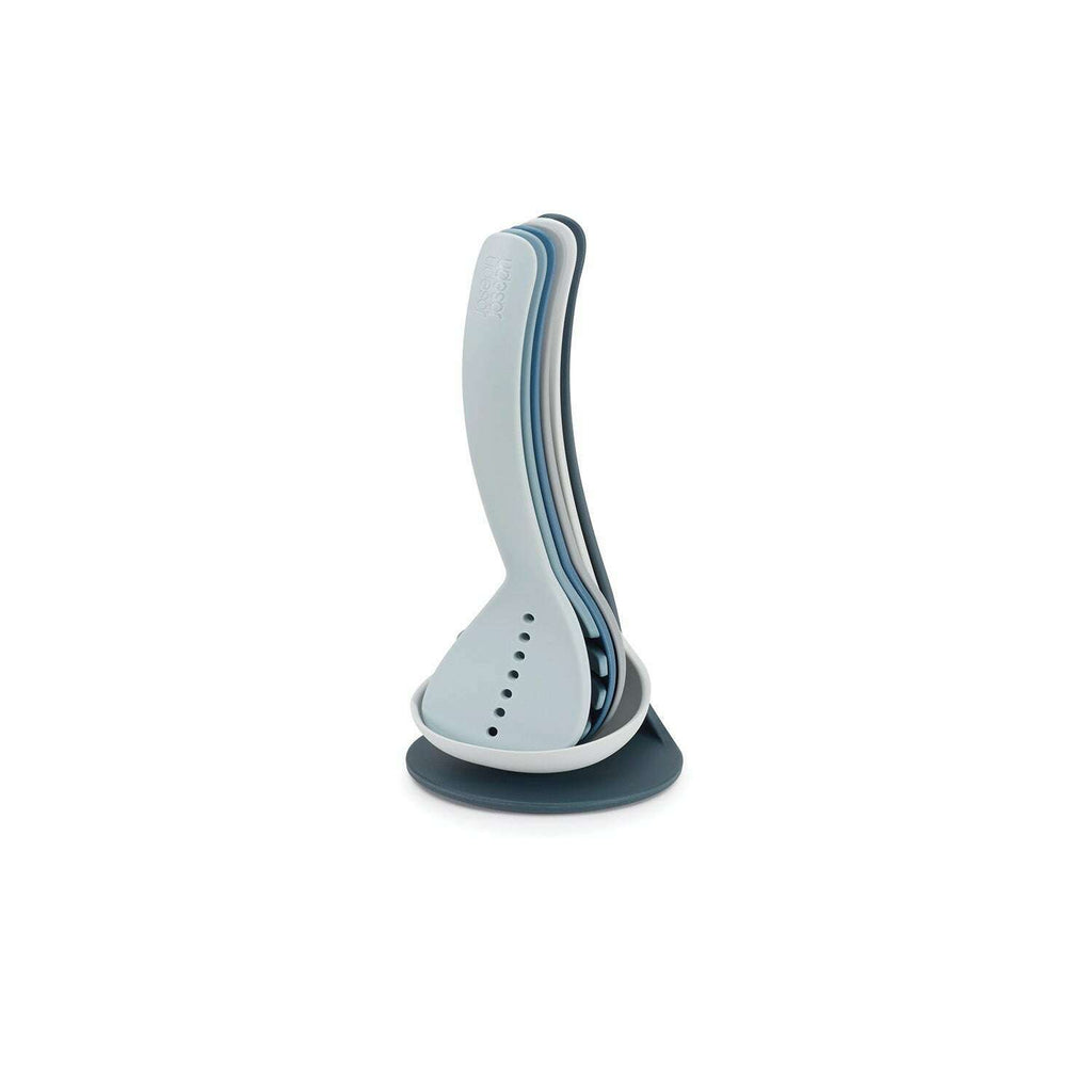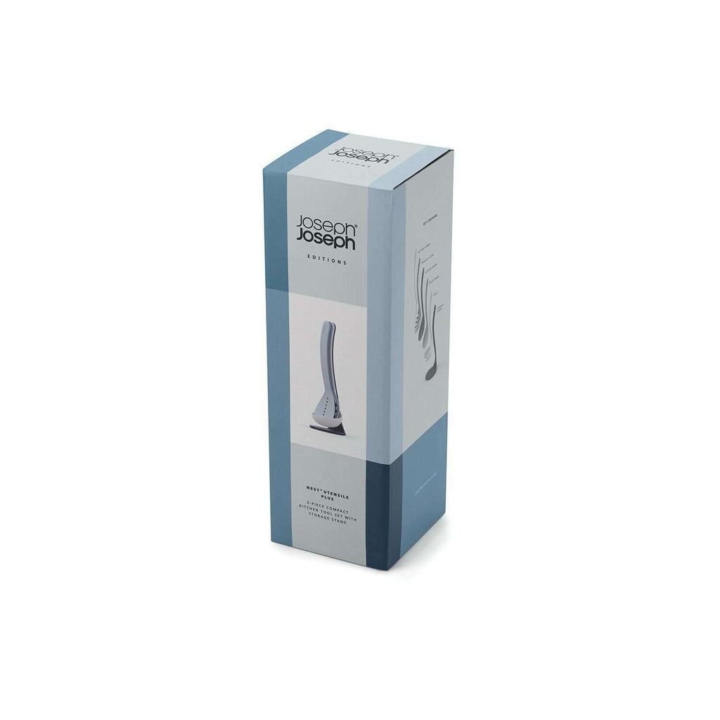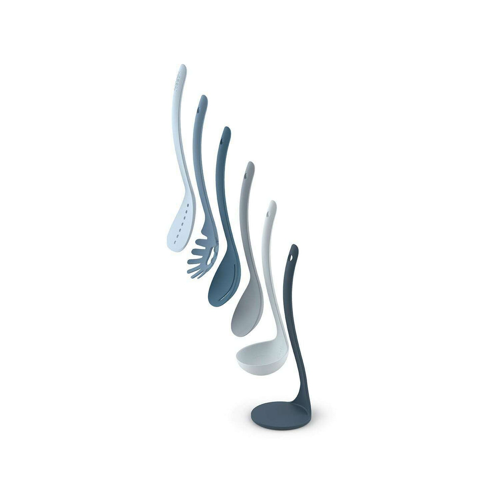 • Set contains a slotted spatula, spaghetti server, slotted spoon, solid spoon ladle and storage stand