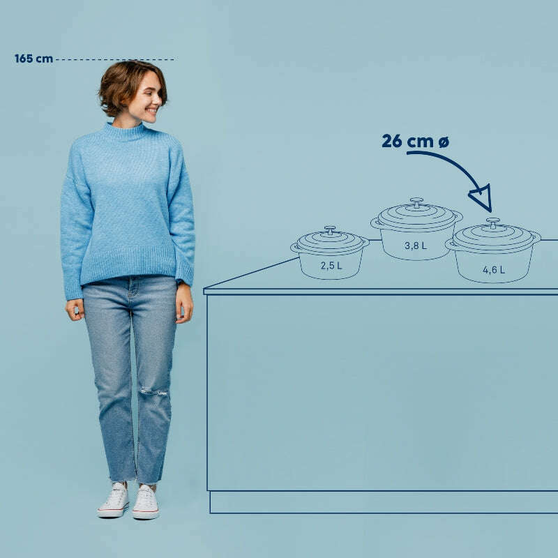 The roaster (enamelled) is suitable for all types of stoves (also for induction!) for example for longer lasting stews.