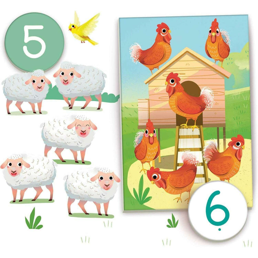 With multiple game modes of increasing difficulty, children will have to count the animals on the card and match them to the correct number of tokens or the token with the corresponding number.