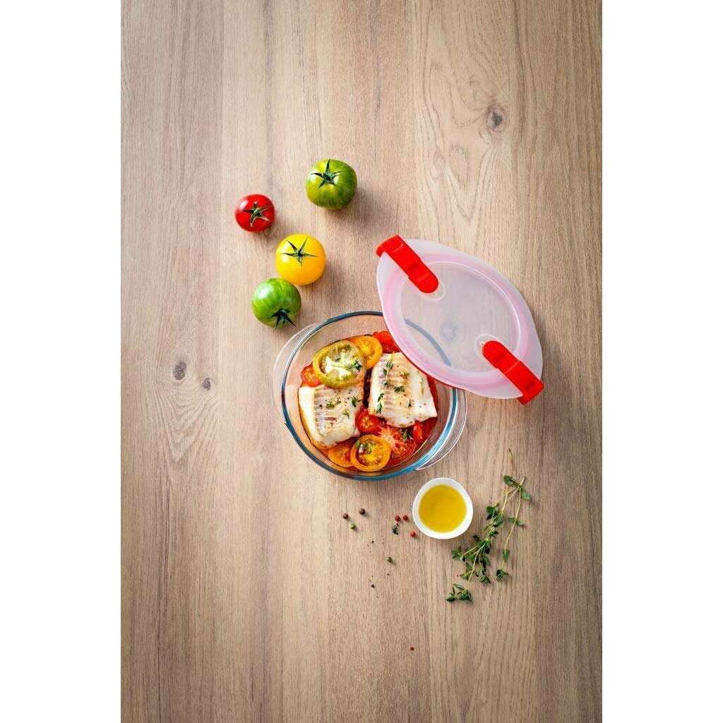 Cook & Heat Round Glass Food container With Patented Microwave Safe Lid