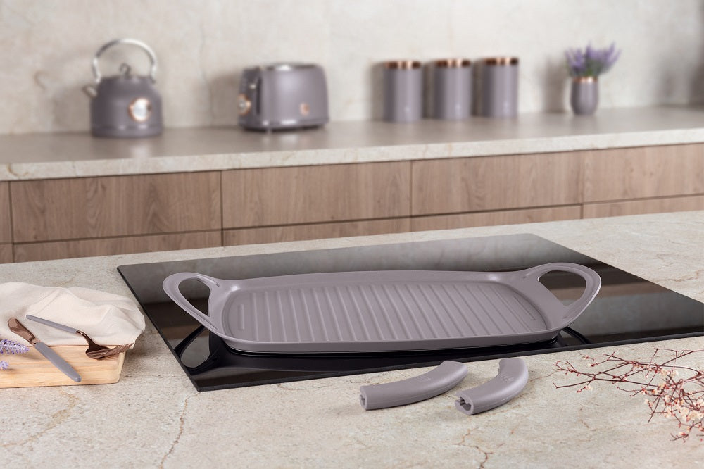 • Removable Silicone Handles: The grill plate comes with 2 heat-resistant silicone handles that can be easily removed, ensuring safe handling during cooking and while transferring the plate from oven to table.