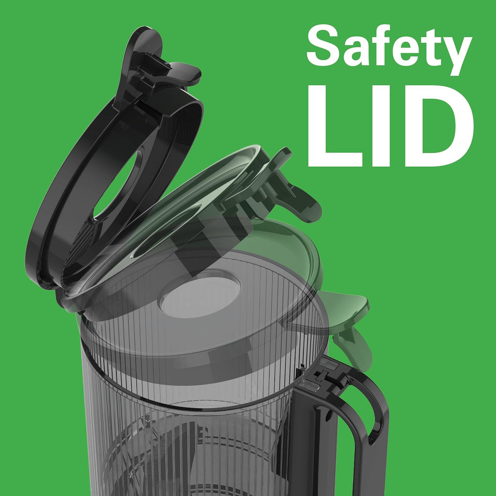 • SAFETY FIRST: The juicer automatically stops if the feed chute lid is open, ensuring safety during operation. Its wide chute also supports whole-fruit juicing, reducing preparation time and increasing convenience.