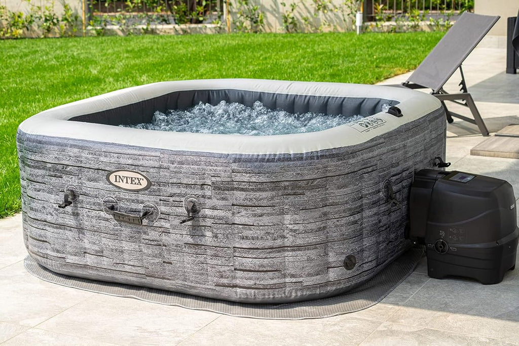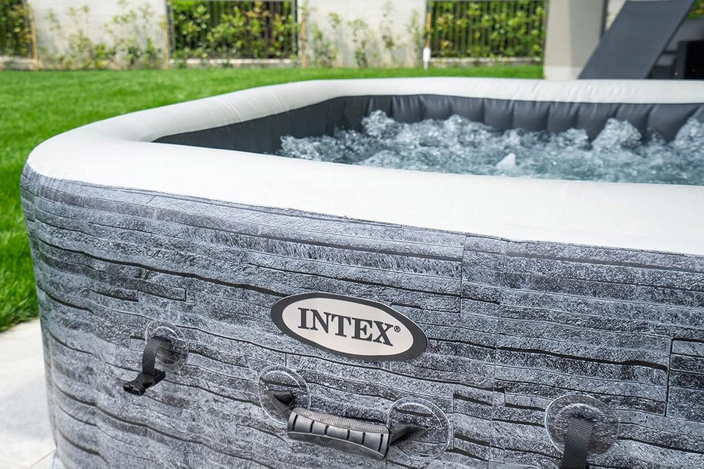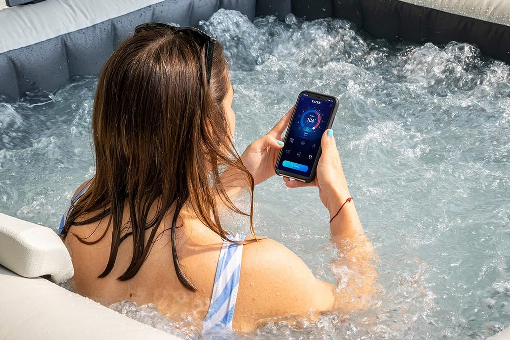 The greystone print in combination with the square shape makes this design adaptable to simple, modern and classic environments. Intex Greystone Deluxe™ Spa in 4-person size offers powerful bubble jet system for a soothing and invigorating massage. This spa line also combines all the top-of-the-line features including dual integrated water treatment systems, Fiber-Tech™ technology for superior strength, integrated QuickFill™ inflation system for simple inlation, wireless control panel, mobile management app and two premium PU foam headrests. For setting the right ambience this set includes a multi-color changing LED light.