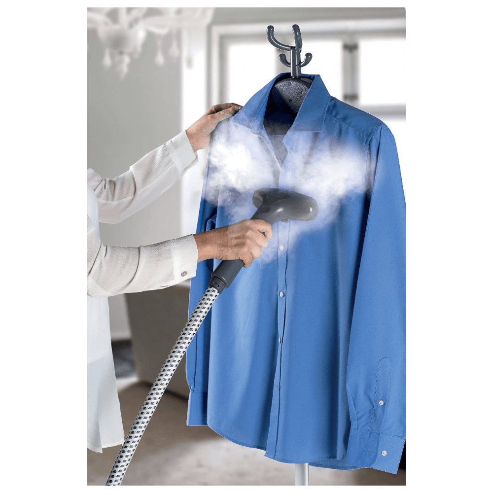 • The steamer is safe for fabrics, so you don’t have to worry about burning them. The shot of steam is 48 g / min, and 4 levels of settings will allow you to adjust the power to your needs.
