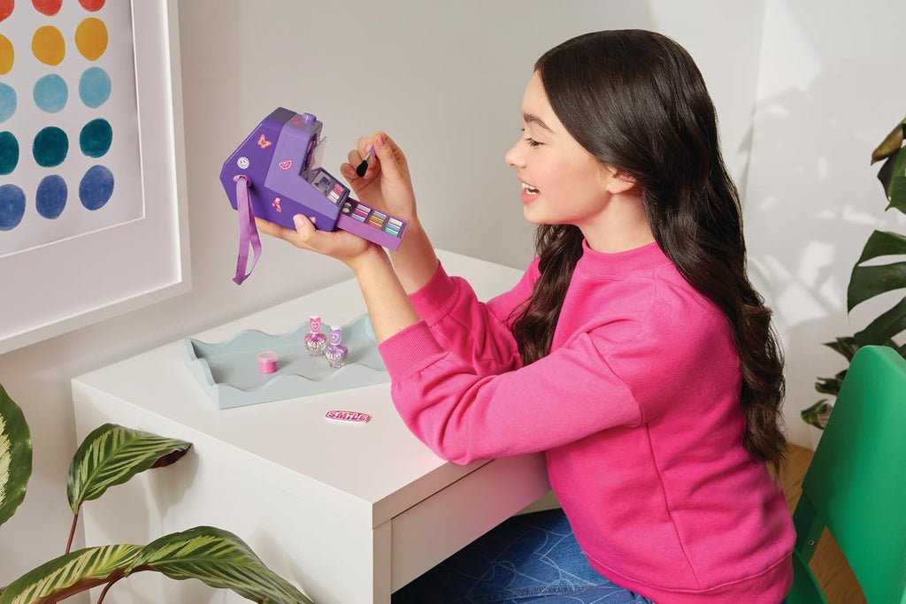 • INTERACTIVE DESIGN: Shaped like a camera, the case adds a fun, interactive element. Press the button to reveal a pop-out tray with additional makeup compartments, enhancing the play experience.