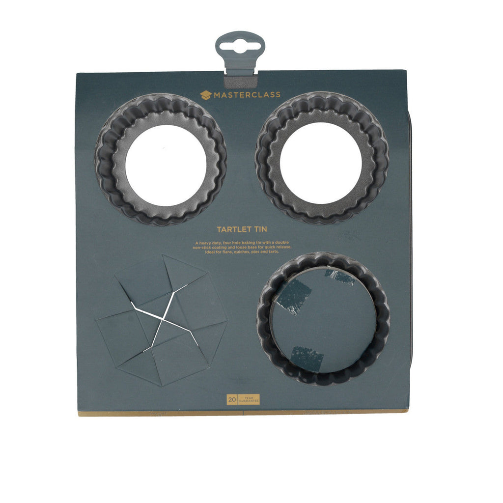 MasterClass Non-Stick Four Hole Loose Base Fluted Mini Tartlet Pan