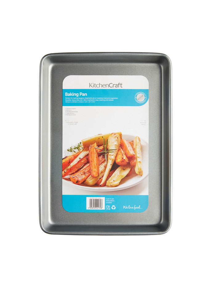 A sturdy, reliable baking pan is an essential part of any kitchen, just like a kettle, a toaster or a can opener. This everyday baking pan will fit right in to your cooking toolkit, thanks to its versatile nature and robust non-stick surface. Whether you’re baking scrummy cookies, preparing a chunky lasagne, pulling together a freshly seasoned roast or cooking a succulent fillet of fish, you can rely on this great-value oven tin to deliver a delicious dinner every time. And, what’s more, thanks to the non-stick surface you won’t have to spend hours scrubbing at the sink afterwards!