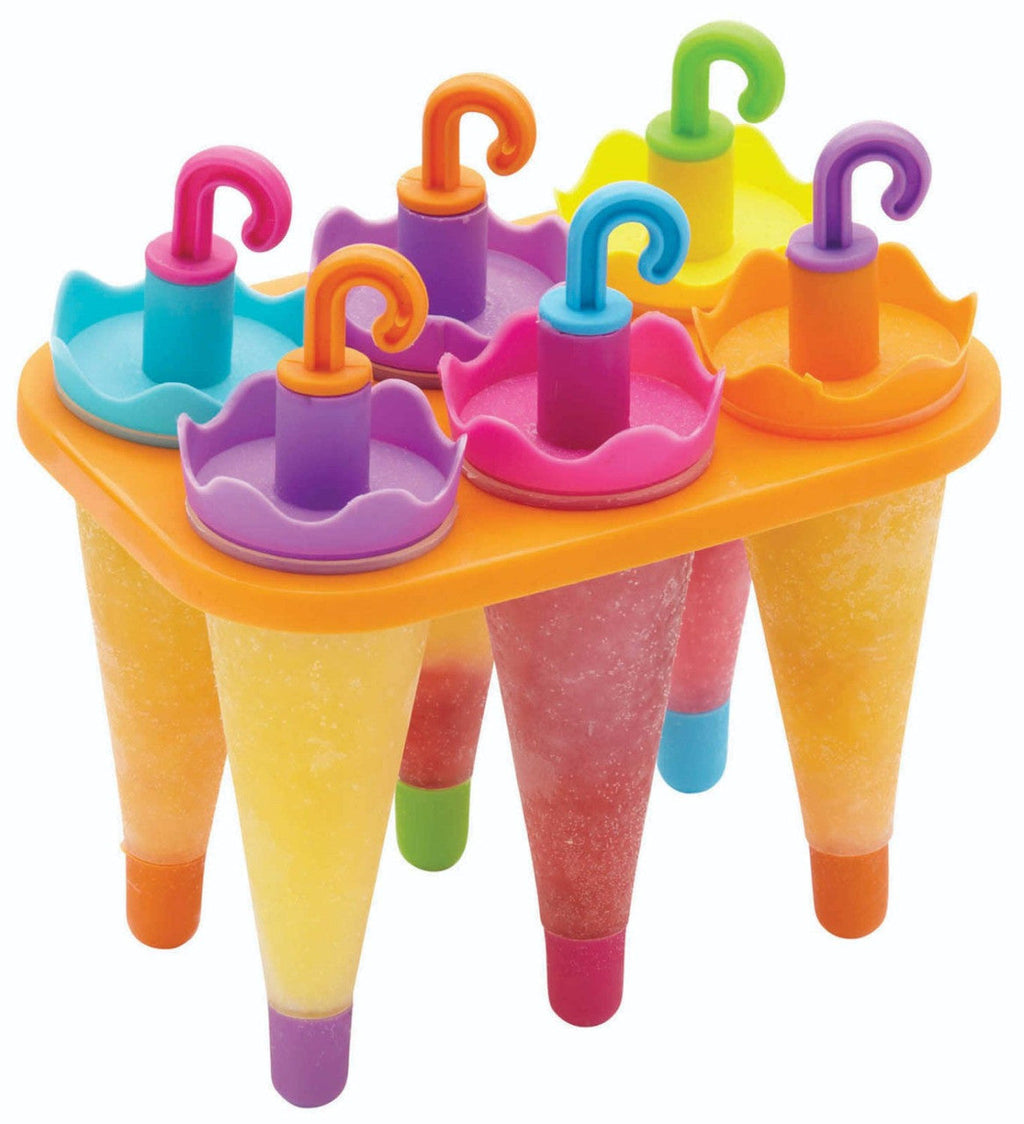 Sure, shop-bought lollies are sweet, delicious and children love them, but they're also packed with mysterious ‘E-numbers’ and unhealthy sugars. With KitchenCraft’s umbrella-shaped frozen lolly moulds, you can make healthier iced treats that your little ones can enjoy come rain or shine! Making a batch of frozen ice pops couldn't be easier with these ice lolly makers. Just pour fruit juice into each plastic mould and freeze. In just a few hours, you’ll have six cute, colourful ‘umbrellas’ to enjoy. Don’t stick to fruit juice, though. Pour in flavoured milk, yoghurt or even smoothies instead. There’s loads of room to be creative, with limitless flavour combos out there to discover. You could even freeze plain old water, for an unusual way to chill drinks and cocktails. These lolly makers make refreshing frozen treats kids love. And you get to rest safe in the knowledge that you know exactly what goes into them. No additives, no weird E-numbers, and the moulds are BPA-free.