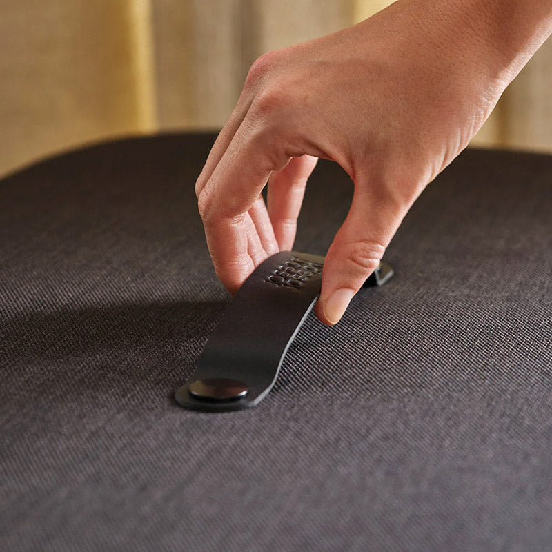 • Luxury bamboo exterior and fabric-wrapped lid with leather handle.