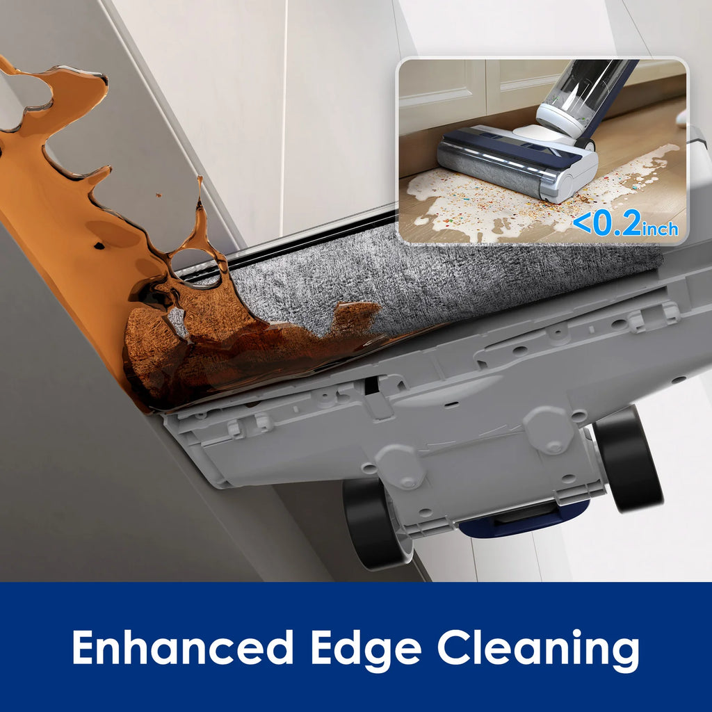 Tineco's exclusive brush head easily reaches narrow spaces and ensures precise cleaning along baseboards and in hard-to-reach corners, with the capability to clean edges and corners as narrow as 0.20 inchesEnhanced Edge Cleaning.