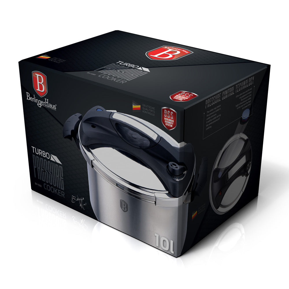 Crafted from premium 304 18/10 Stainless Steel, this turbo pressure cooker is not just a cooking device; it’s a statement of style and durability. With a generous 10L capacity, it’s perfectly suited for large family meals, batch cooking, or meal prep for the week ahead. The gleaming stainless steel is not only easy on the eyes but also ensures your cooker stands the test of time, resisting corrosion and maintaining its luster.