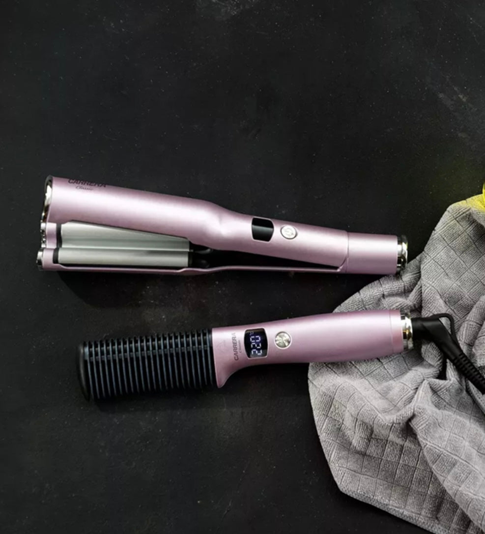The new styling series from Carrera requires just one cable for all devices. With three quick movements, each device is ready to use immediately. The Click&Style smoothing comb detangles and straightens hair in one step. There are six temperature settings available. The bristles are coated with a ceramic layer for even heat distribution. The digital LED display allows for precise temperature control. The Click&Style curling iron is easy to use and perfect for soft beach waves. Again, there are six temperature settings, and the styling surface has a ceramic coating for even heat distribution. One cable for all devices ensures easy switching through a click system. The devices can be stored compactly – at home or while travelling. The 360-degree swivel cable joint offers maximum freedom while styling. The cable length is 180 cm.