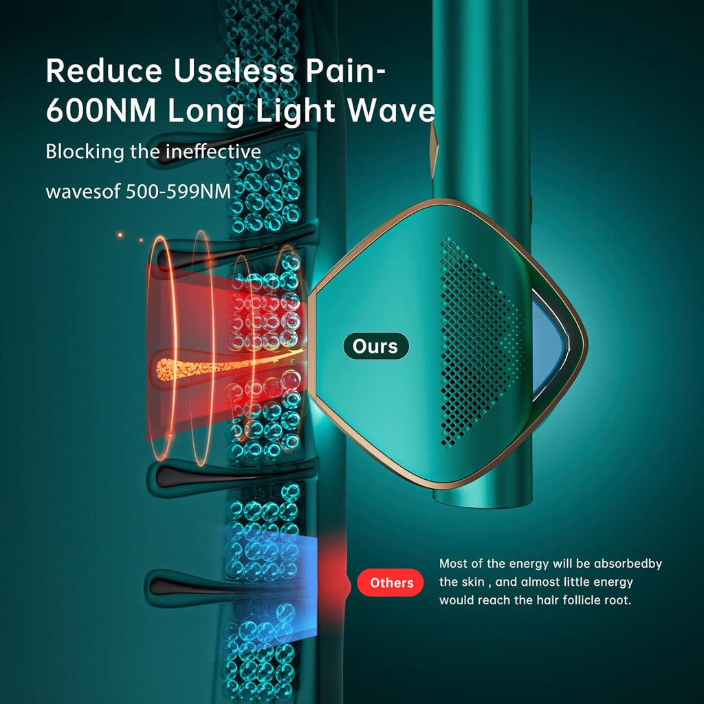 - 600NM Red Light Wave: Light waves in the 590NM and lower wavelength bands do not provide hair removal and can add unnecessary pain. Therefore, the AMINZER laser hair remover machine controls the light wave to the long red light wave stage of 600-1200NM. This provides a better hair removal effect.