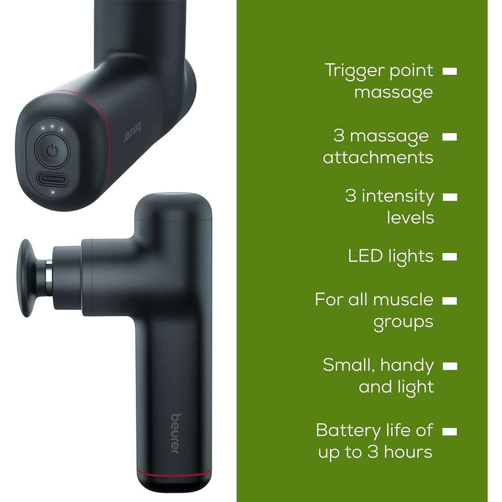 Wow! At 14.7 cm, the MG 79 Massage Gun is very small, but still very powerful. With 3 intensity levels, 3 massage attachments and up to 3 hours of battery life, it is ideal for sensitive body areas such as the neck, foot and jaw muscles.