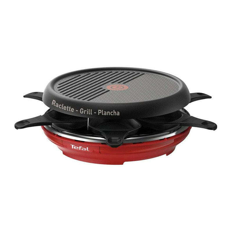 • 6-person raclette apparatus with chauffe thermo-spot indicator for cooking food.