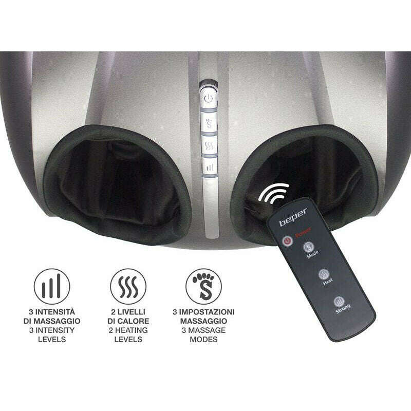 This foot massager is ergonomically designed for maximum comfort, by offering a deep Shiatsu massage with heating effect and air compression. It improves blood circulation, soothes pain caused by planta fasciitis, and helps reducing neuropathic numbness of the feet. Intensity of massage and air compression adjustable on 3 levels and 2 levels of heat available, to create a unique and customized massaging program. Detachable and washable foot sleeves. Remote control included and auto shut off after 15 minutes of use.