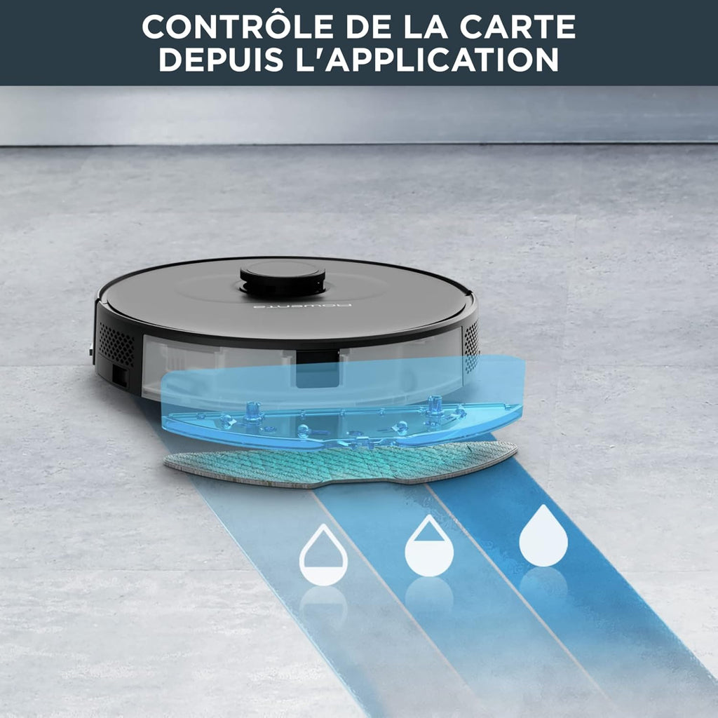 The built-in mopping system offers 4 adjustable water flow levels, automatically adapted to your floor type for streak-free, optimized washing on tiles, laminate, or hardwood.