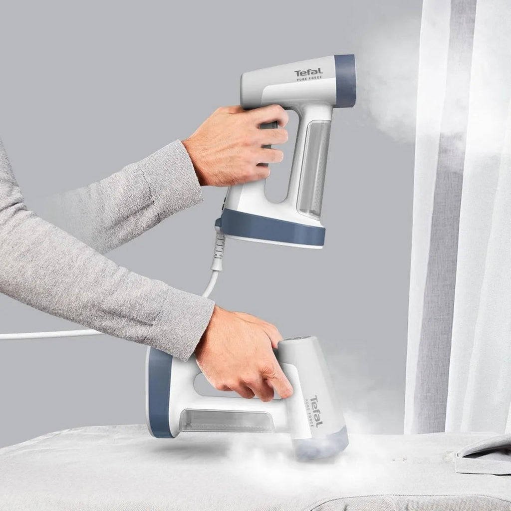 Choose Tefal’s expertise with the Pure Force 2-in-1 handheld garment steamer. Effortlessly switch from horizontal to vertical position. With 1800W of power, 4 steam settings, and a Boost mode delivering up to 300% more steam, care for your clothes like never before. Refresh your garments with the natural power of steam, reduce odors, and kill up to 99.99% of bacteria, viruses, and germs.
