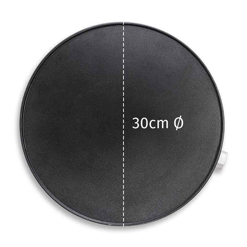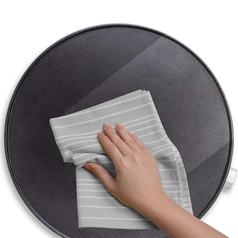 • 30 cm non-stick plate - easy to clean. The generous 30 cm diameter cooking surface has a high-quality non-stick coating that prevents the dough from sticking and makes cleaning easier after use.