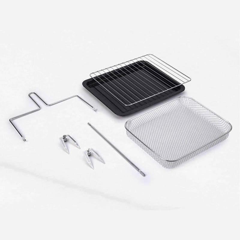 Accessories: 4 bake trays, fetch rack, rotisserie hooks