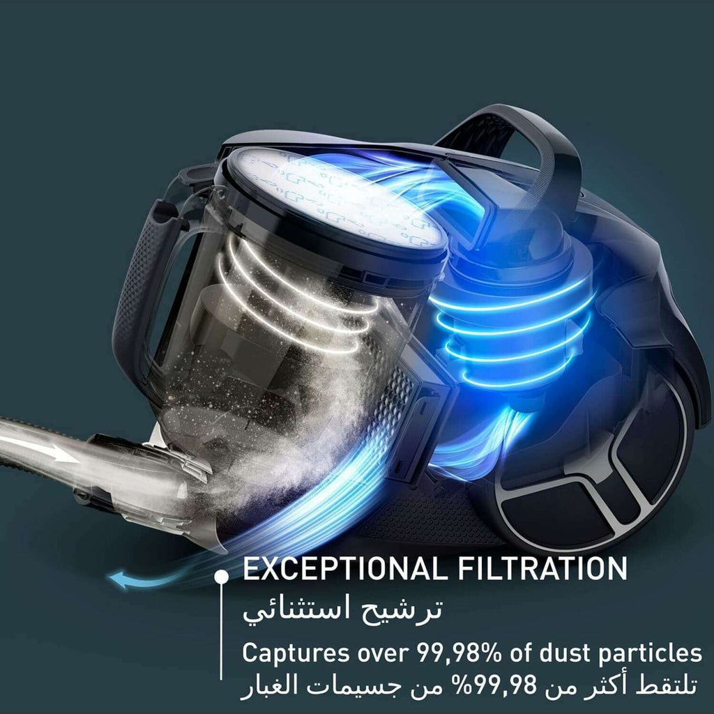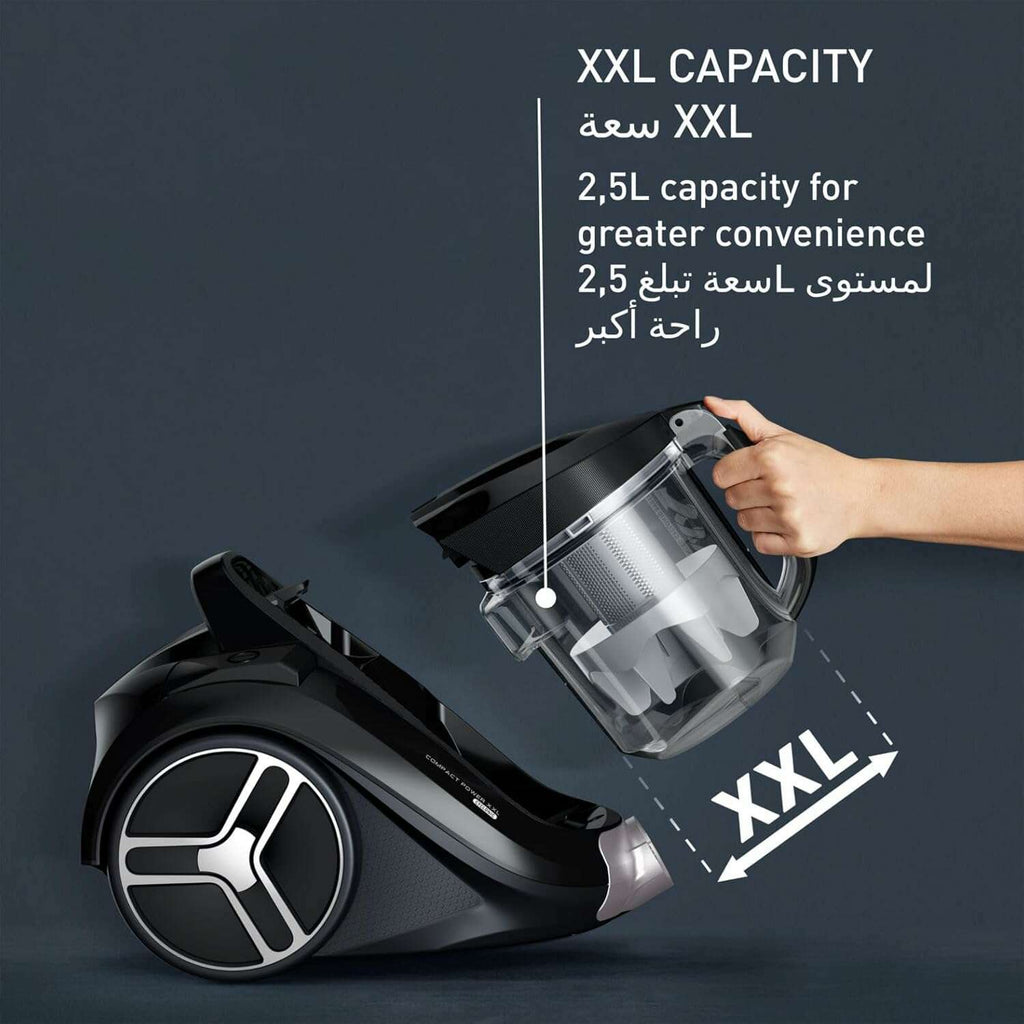 • XXL CAPACITY: An impressive 2.5 L capacity to cover all sizes of living spaces, for a canister vacuum cleaner that offers greater autonomy and convenience