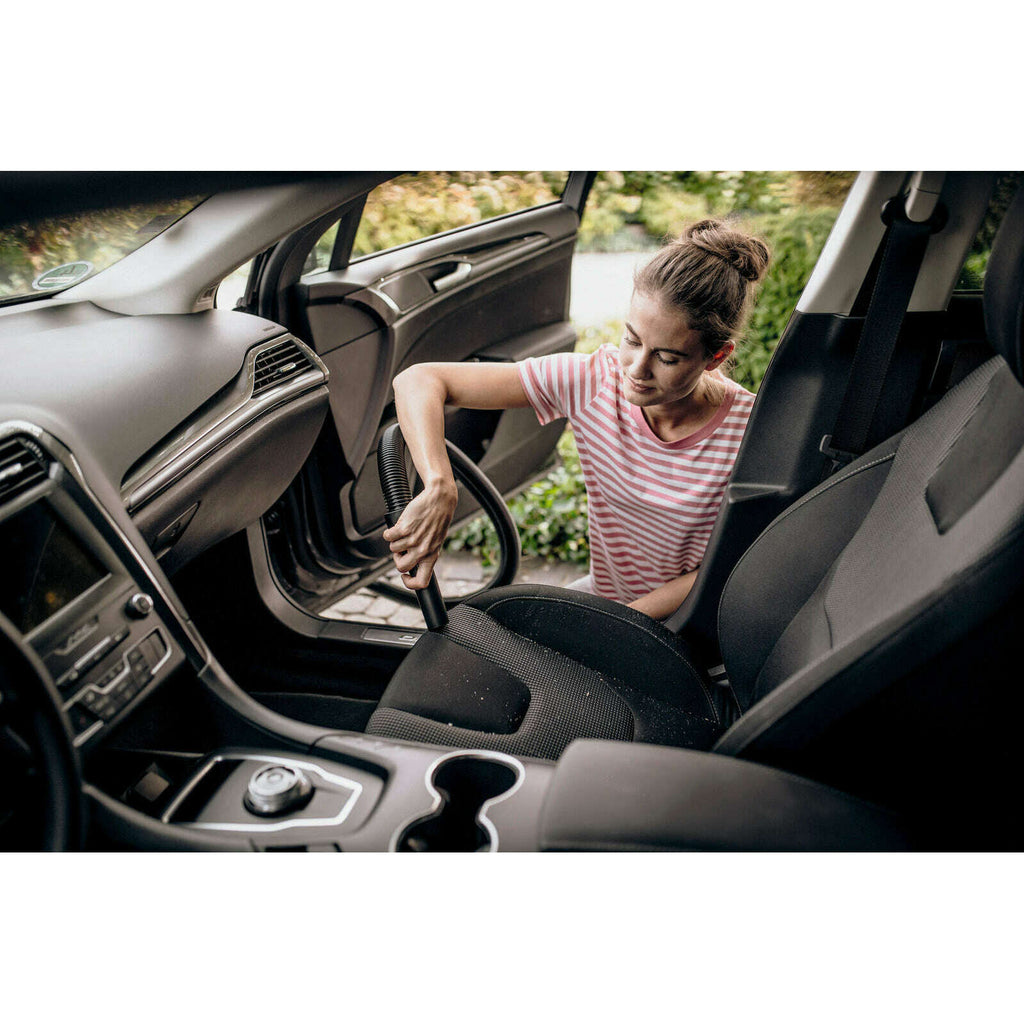 The WD 2 Plus V-12/4/18 impresses with its compact design and is super-powerful and energy-efficient – and with power consumption of only 1000 W. The machine achieves top cleaning results for dry, wet, fine and coarse dirt. The wet and dry vacuum cleaner has a robust 12 litre plastic container, 4 metre cable, as well as 1.8 metre long suction hose with straight handle, Clips floor nozzle, foam filter and fleece filter bag. The vacuum cleaner also has a practical blower function, which can be used in places where vacuuming is difficult. The storage area on the machine head is used for the safe storage of tool and small parts such as screws and nails. Tubes and floor nozzles can also be quickly and conveniently parked in the park position on the bumper. On top of this, the machine boasts space-saving storage, simple accessory storage, the "Pull & Push" locking system and an ergonomically shaped carrying handle for comfortable transport.