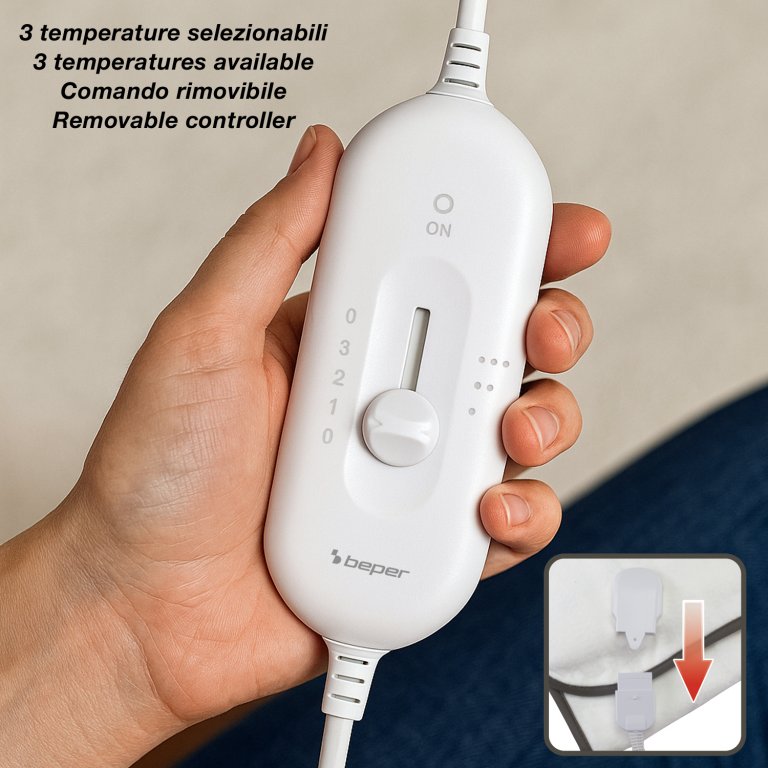 Soft touch polyester electric blanket, with 2 temperature settings available in two different areas thanks to the 2 remote controllers supplied.