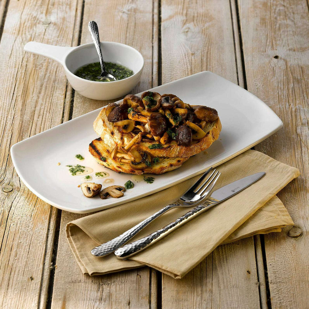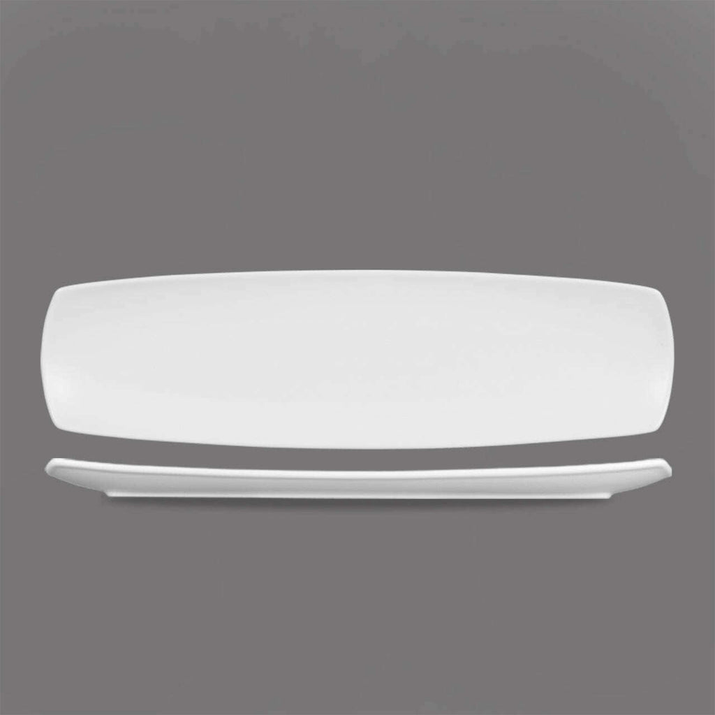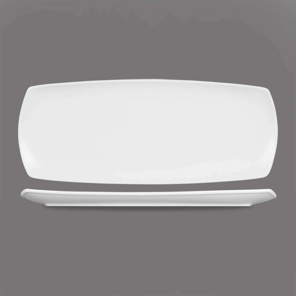 • A beautiful range of three rectangular rimless plates with soft curves.