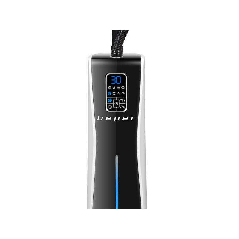Fan with modern and practical design. This fan is ideal for giving  freshness to all domestic environments thanks to the digital control panel with the nebulization function, the 3 operating modes (normal, breeze and night) and the 3 selectable speeds.With timer up to 12 hours, programmable also from the convenient remote control supplied. Automatic horizontal swing and integrated 2-litre water tank. The wheels supplied allow you to move and place it in any corner of the room.