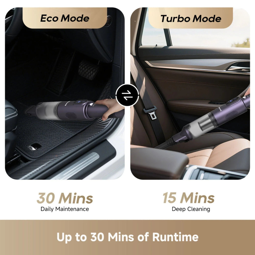 The Dreame Car Vacuum E10 is a lightweight and compact car vacuum designed for simple interior cleaning. It features a powerful 100,000 RPM digital motor, generating 14,000Pa of suction, capable of picking up "bean-size rocks.