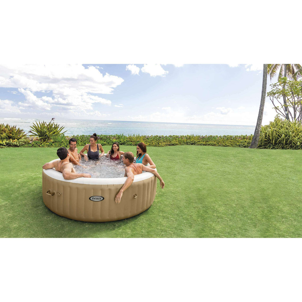 Intex 28428 Bubble Spa inflatable whirlpool bath for 6 people with heat pump, cartridge water filter and all the ideal options to relax comfortably at home or in the garden.
